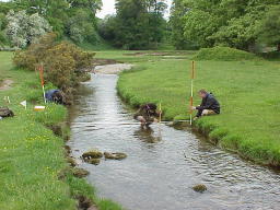 The photographs begin upstream at guaging point 1. At point 12 a tributary joins the main stream.