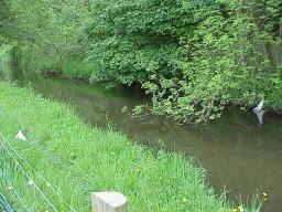 the changes in river characteristics with distance downstream. Depth and width of channel were measured at 24 gauging points taken at regular intervals downstream. Can you see any downstream changes in river characteristics from the photographs? Look for meandering, increasing width and depth of channel. The photographs begin upstream at guaging point 1. At point 12 a tributary joins the main stream. |